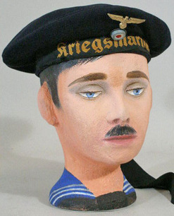 A German WWII Navy seaman's cap, navy wool with silk band and tally painted in gold "Kriegsmarine", gold metal eagle badge, metal cockade.