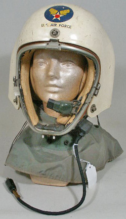 A rare US Air Force high altitude pilot's helmet, circa 1948 to 1950, white fiberglass, Air Force decal to front center.
