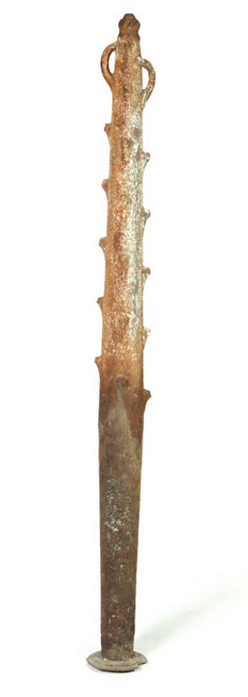 A cast iron hitching post, American, 2nd half 19th century, tree trunk form.