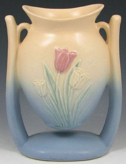 A Hull Tulip suspended vase in cream and blue. Marked Hull USA 103-33-6".