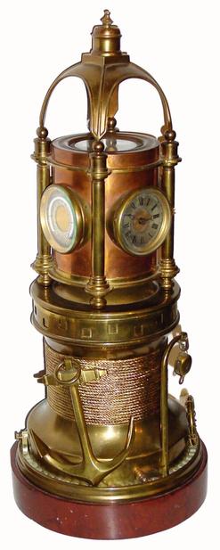 A circa 1890 French large Nautical Theme clock from the Industrial Series. The heavy automaton movement housed within the polished brass capstan, rota... [more detail available via subscription]