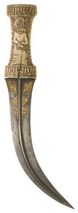 Knife; Dagger, Ivory Handle, Gold Inlaid Blade, India, 14 inch.