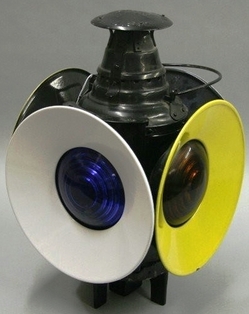 A Dressel railroad switch [or switch-stand] lantern, Arlington, New Jersey, embossed with maker's name on top, two white reflectors with blue lenses a... [more detail available via subscription]