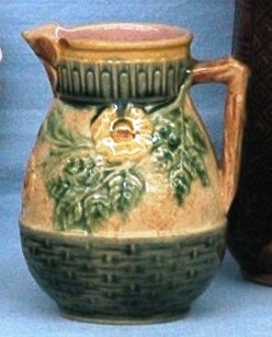 Majolica Pottery; Etruscan, Griffin, Smith & Hill, Wild Rose, Creamer, Butterfly Spout, 5 inch.
