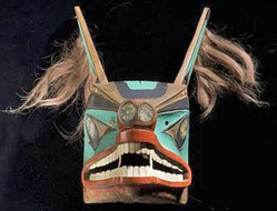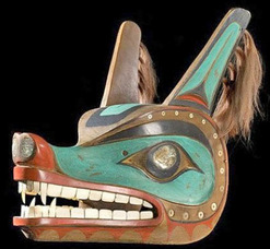 | | A Tlingit wolf mask with paint decoration and abalone eyes; image credit on full record. |