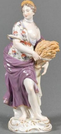 A Meissen porcelain figure of Demeter, early 20th century, the standing figure holding sickle and sheaf of wheat, in diadem of wheat.
