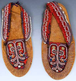 Moccasins; Eastern Woodlands, Beaded Hide, 9 inch.