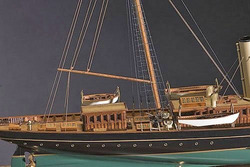 Model of the American Steam Yacht Corsair II, highly detailed with masts, booms, standing and running rigging, paneled deck houses with door and windo... [more detail available via subscription]