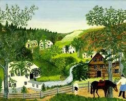 An oil on board by Grandma Moses. image courtesy of Shannon's Fine Art Auctioneers.;