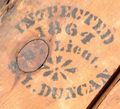 | Detail of 1864 inspector's mark on the Confederate munitions crate; image credit on full record. |