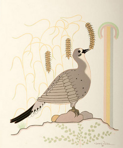 | One of three Gerald Nailor silkscreens, this one of a dove eating wheat; image credit on full record. |