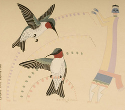 | One of two Gerald Nailor silkscreens, this one of hummingbirds in flight; image credit on full record. |