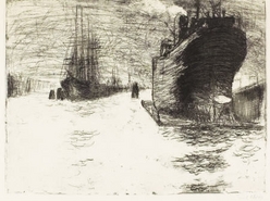 An etching by Emil Nolde (German, 1867 to 1956). Hamburg, Reiherstieg Dock. Signed in pencil lower right: Emil Nolde. Inscribed lower center: Hamburg ... [more detail available via subscription]