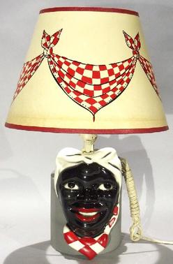 A wall-mount ceramic Aunt Jemima lamp with original shade.