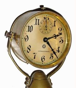 | | A circa 1915 {dated} THE SHRAPNEL CLOCK, an early 20th century cannon projectile, with a New Haven intermittent alarm on top, image courtesy of R.O. Schmitt Fine Art.; |