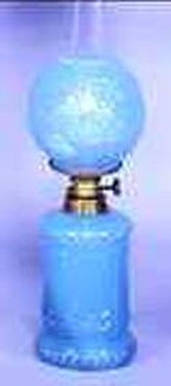 A scarce miniature blue opaline glass with embossed design; foreign burner.