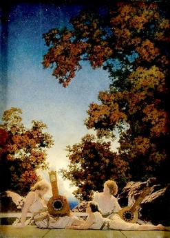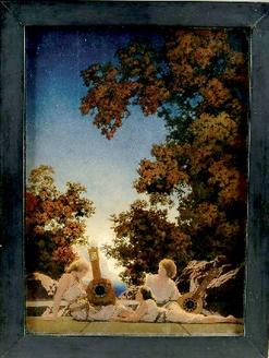 | An oil paint over a print by Maxfield Parrish; image credit on full record. |