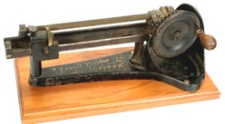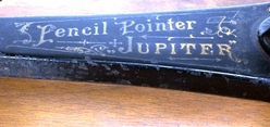 Jupiter Pencil Pointer cast iron pencil sharpener, cast iron, brass and wood in original black paint with gold stenciled title reading Jupiter Pencil ... [more detail available via subscription]