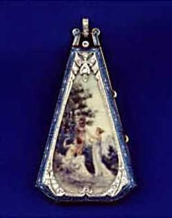 Pendant/Case; Enamel & Diamond, Edwardian, Porcelain Plaque, Two Compartment.