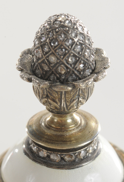 A Faberge or Faberge style gold mounted Agate scent or perfume bottle, Russian or German, finely crafted and formed as a miniature handled urn, the hi... [more detail available via subscription]