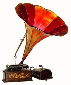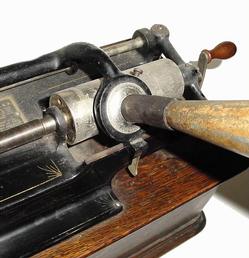 A circa 1905, Edison "Home" cylinder phonograph. This model is cosmetically nice with original finish and applied decoration, looks like proper parts... [more detail available via subscription]