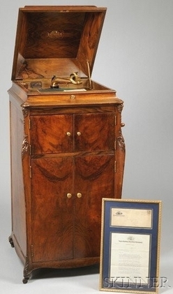 | | A Victor Victrola VV-XVI Phonograph in Circassian walnut cabinet with ogee lid and apron; image credit on full record. |