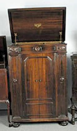 A Victor Victrola Orthophonic Credenza model. Mahogany case. Electric motor.