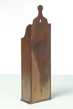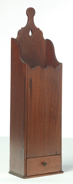 AMERICAN HANGING PIPE BOX. 19th century, mahogany. Shaped crest, single dovetailed drawer. Refinished. Age splits.