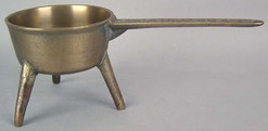 Bell metal posnet [three leg skillet or pan], 18th century, handle stamped 'T.P.B. Water III'.