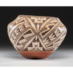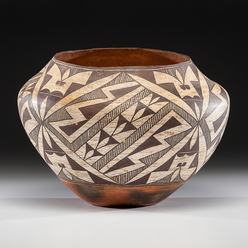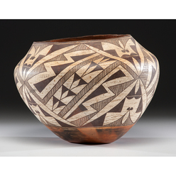 Large Acoma Pottery Jar, red clay pottery jar with black and white geometric design, second quarter 20th century. Height 10.75 in. x diameter... [more detail available via subscription]