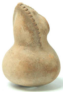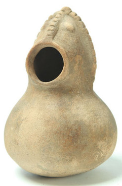 | | Prehistoric pottery effigy bottle. Mississippian culture, circa 1400-1600, Arkansas. Figure with headdress and open mouth, underside; image credit on full record. |