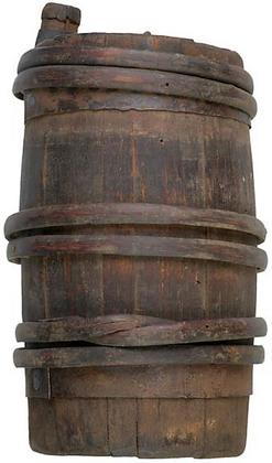 A Revolutionary War barrel form powder keg; image credit on full record.