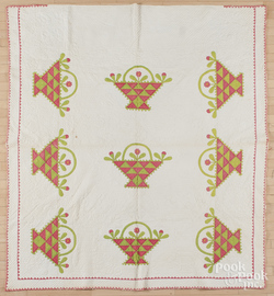 Applique basket pattern quilt, late 19th century, 82" x 74".Fraying along edges. Light staining.