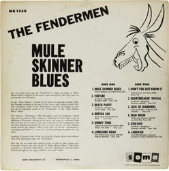 Fendermen "Mule Skinner Blues" LP album, Soma 1240 (1960). This unlikely Pop "group" was really just two college buds with an affinity for a certain b... [more detail available via subscription]