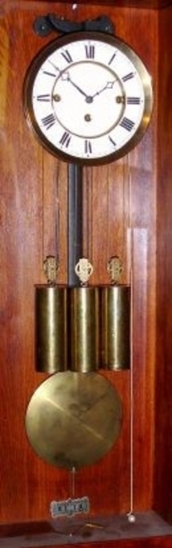 Regulator Clock; Gustav Becker, 3-Weight, Grand Sonnerie, Wall, 35 inch.