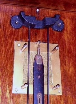 | | Backside of circa 1900, German, Gustav Becker, 3-weight, Grand Sonnerie regulator clock; image credit on full record. |