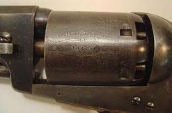 | | Detail of top of breech mark - ADDRESS SAML COLT NEW-YORK CITY - on a Colt Second Model Dragoon Revolver; image courtesy of Greg Martin Auctions.; |