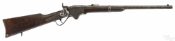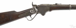 A Spencer Model 1860 military repeating saddle ring carbine, .52 caliber, with a tubular magazine, 22'' round barrel. Serial no. 33028. Meta... [more detail available via subscription]