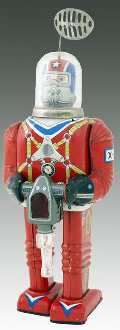 A Japanese battery-operated tin Cragstan X-70 Astronaut space robot.