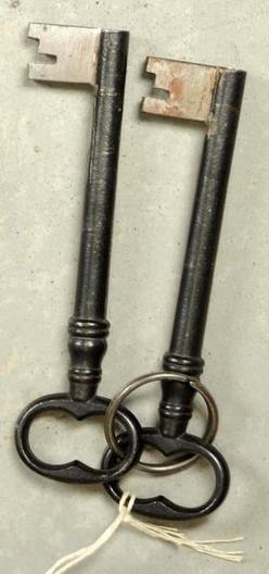 | | The two keys for the door lock of this Milnor & Shaw safe; image credit on full record. |