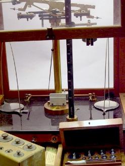 | | A Seederer-Kohlbusch Analytical Beam Balance in a glazed mahogany case with weights; image credit on full record. |