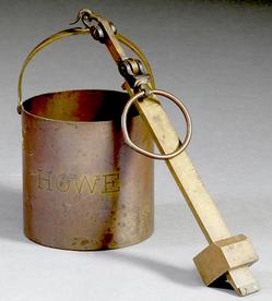 A brass Winchester Bushel scale, brass hanging scale with detachable brass hopper/bucket stamped Winchester Bushel on sliding brass weight and Victor ... [more detail available via subscription]