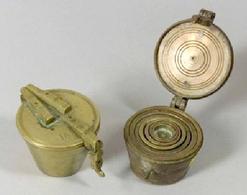 Two Sets of nested Nuremberg weights, one with seven and the other with five cups, in brass keepers.