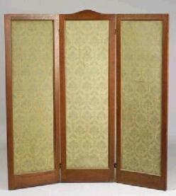 Screen; Arts & Crafts, Stickley (Gustav)?, Oak, Grass Cloth Inserts, 3 Panels, #83, 56 inch.