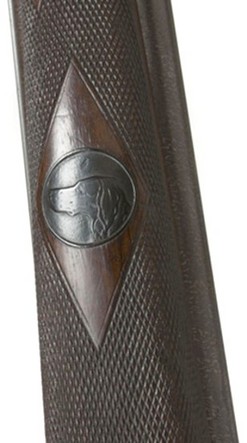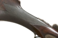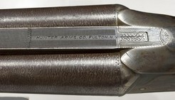 | Detail of the Hunter Arms 16 gauge double barrel shotgun; image credit on full record. |