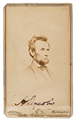 Signed Photograph; Lincoln (Abraham), Portrait, CDV.