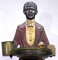 A cast metal Cigarette Stand in the form of a Butler holding ashtray.