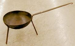 A fine 19th century hand wrought iron spider or fry pan for fireplace use. Rounded bottom supported by 3 splayed rectangular-shaped legs riveted to si... [more detail available via subscription]