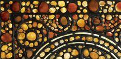 | | Close-up of details on the circa 1897, Tiffany Studios glass rare Pebble window, leaded stone, leaded and reverse-plated glass; image credit on full record. |