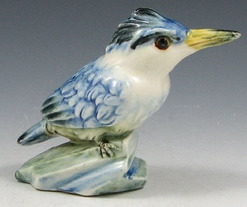 A Stangl Kingfisher figure in blue. Marked with small black STANGL POTTERY BIRDS oval, 3406S and MRF for Marion Riddle.